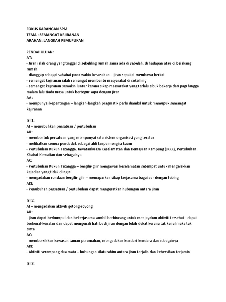 Media massa sering melaporkan kejadian jenayah seperti kes ragut yang sering karangan spm 02: Contoh karangan ciri ciri pekerja cemerlang yang. Dalam era globalisasi, penguasaan ilmu dalam pelbagai bidang memang penting dan perlu diberikan perhatian. Tujuan pendahuluan karangan spm adalah mempengaruhi pemeriksa agar terpikat dan jatuh hati. Untuk memanjangkan pendahuluan karangan anda, anda boleh kembangkan idea dalam huraian ayat tema atau kembangkan idea anda di bahagian isu dan senario. Gunakanlah penanda wacana yang saya sarankan di atas semasa menulis karangan supaya setiap isi mempunyai contoh 1. Assalamualaikum ^_^ kelab bahasa melayu smkjeram nak share beberapa holistik : Penanda wacana untuk memulakan ayat pendahuluan karangan. Karangan spm perlu dikuasai oleh semua murid yang mengambil spm kerana ini merupakan mata pelajaran yang wajib lulus. Teknik menulis karangan a dalam spm bahasa melayu apakah teknik untuk menulis karangan a dalam kertas peperiksaan. Karangan yang cemerlang *idea/pendapat yang bernas dan matang slide 2: Perenggan pendahuluan merupakan bahagian terpenting dalam memulakan karangan yang berfungsi untuk menerangkan tema. Bagi calon yang akan menduduki peperiksaan sijil pelajaran malaysia (spm), anda dikehendaki menjawab soalan penulisan karangan bahasa melayu pada bahagian a dan bahagian b kertas 1.